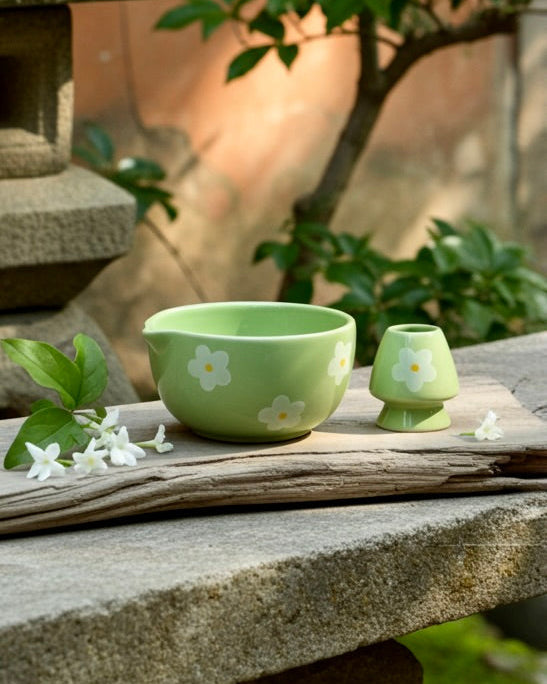 The Wildflower Bloom Matcha Set | Ceramic Bowl & Whisk Holder