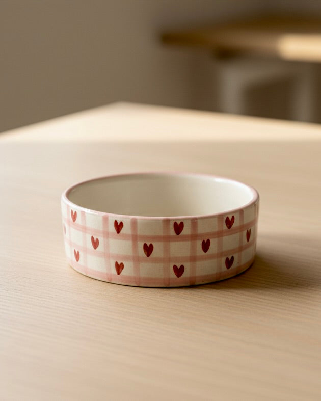 Aesthetic Pink and White Checkered Matcha Set | Ceramic Bowl & Whisk Holder