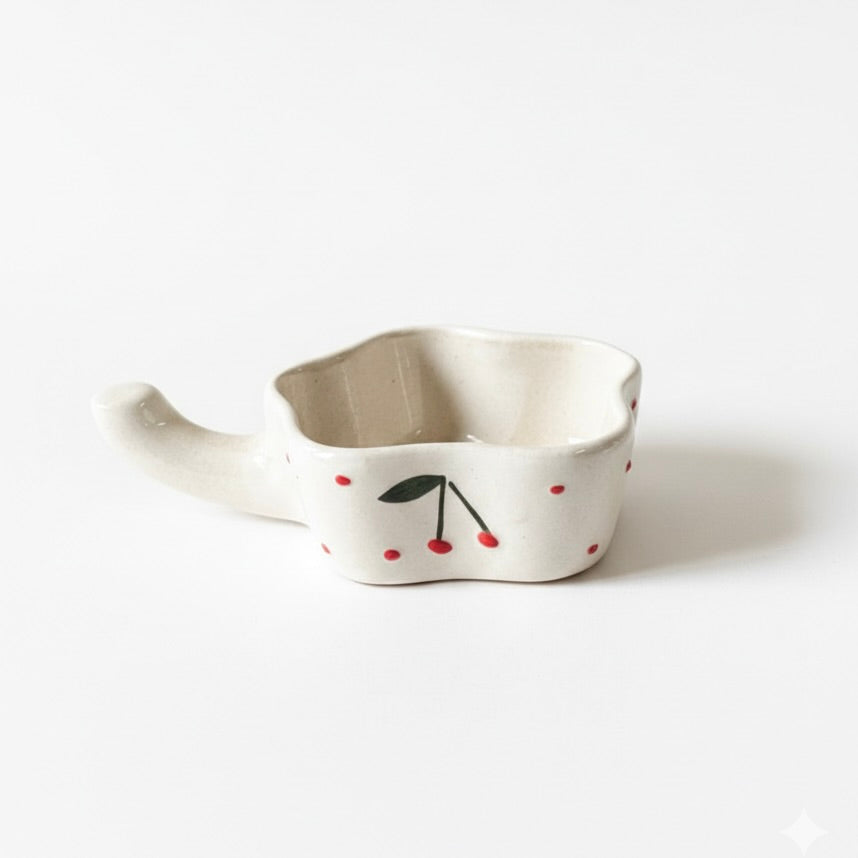 Capture the essence of spring with this petal-shaped ceramic dip, beautifully decorated with a centered cherry icon and red polka dots. This high-quality ceramic piece is a staple for any aesthetic kitchen, offering a dainty way to serve condiments while keeping your dining setup looking effortlessly chic.