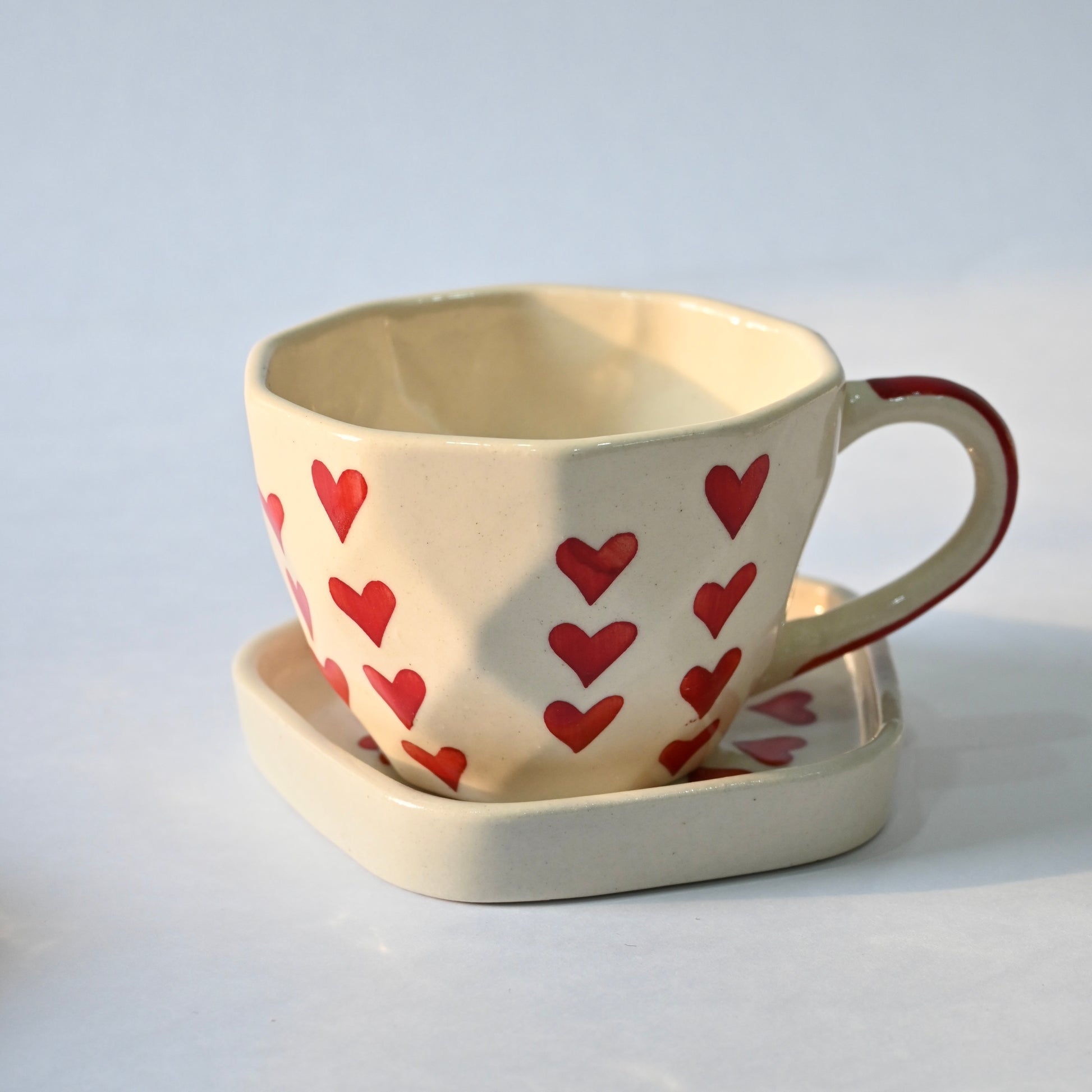 Delicate, sweet, and full of warmth, the Cozy Hearts Teacup & Saucer Set from Saabi House is perfect for tea shared with love. Decorated with subtle heart motifs, this set is a celebration of soft moments and kind rituals. Handcrafted in small batches with a gentle, romantic palette. A heartfelt gift for someone special, or a sweet addition to your own ritual. It’s more than a cup, it’s a feeling, ready to be shared.